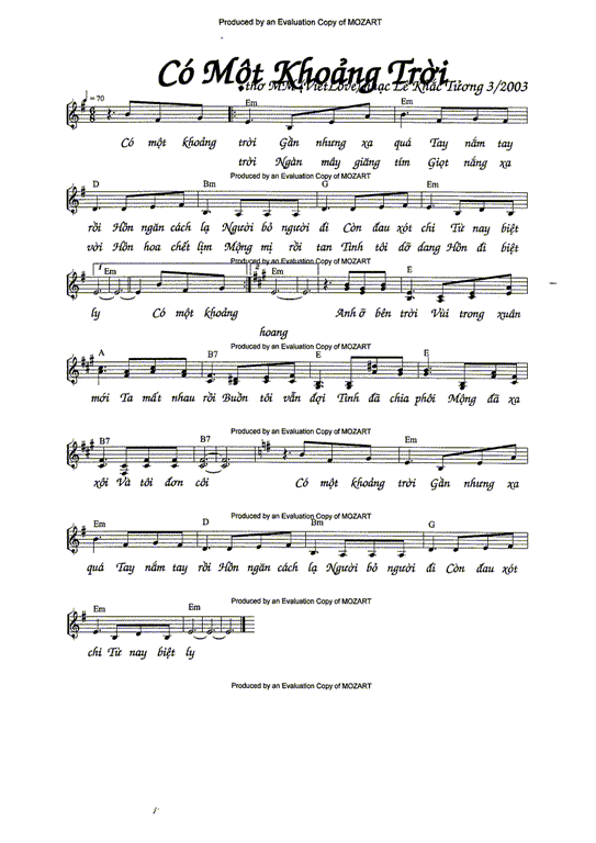 Trang NhàNhạcLê Khắc TưởngCó một khoảng trờiCó một khoảng trời Lê Khắc Tưởng2 Tháng 4, 2010Tay nắm tay rồi hồn ngăn cách lạ, mình đã từng thấy vậy … https://dl.dropbox.com/s/711yd460pfg8jlf/CoMotKhoangTroi.mp3 Số lần đọc: 3151 BÌNH LUẬN Hủy trả lờiBình luận:Vui lòng viết bình luận của bạn Tên:*Vui lòng điền tên của bạn ở đây Email:*Bạn đã điền một địa chỉ email không chính xác!Vui lòng điền địa chỉ email của bạn ở đây Website: Lưu tên, email và trang web của tôi trong trình duyệt này cho lần tiếp theo tôi nhận xét. ΔBài Cùng Tác Giả Truyện ChưởngDịch chuyện 9 Tháng 4, 2018 Lê Khắc TưởngCòn nhớ không em 30 Tháng mười một, 2010 Lê Khắc TưởngKhiển hoài 4 Tháng 6, 2010 Truyện Chưởng NgắnBiến Mất Đi Một Đêm 2 Tháng 4, 2009 Giang Hồ Kỳ Tình LụcChương 62 – Tân thủ lãnh của Cái Bang [1] 7 Tháng mười một, 2013 Lê Khắc TưởngNgày Tàn 20 Tháng 6, 2009 Thái Cực QuyềnThái Cực Quyền Yếu Lãnh 16 Tháng 6, 2008 Giang Hồ Kỳ Tình LụcChương 4 – Thiên Sơn Nhị Đạo 6 Tháng 4, 2010 Giang Hồ Kỳ Tình LụcChương 10 – Máu Tuôn Sa Mạc 5 Tháng 3, 2011 Lê Khắc TưởngKhiển hoài II 5 Tháng 6, 2010